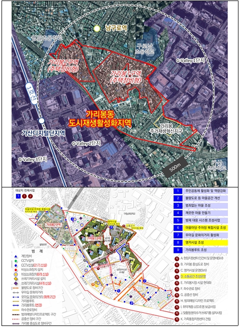 가리봉 도시재생활성화지역 위치도 및 종합구상도 변경(안)